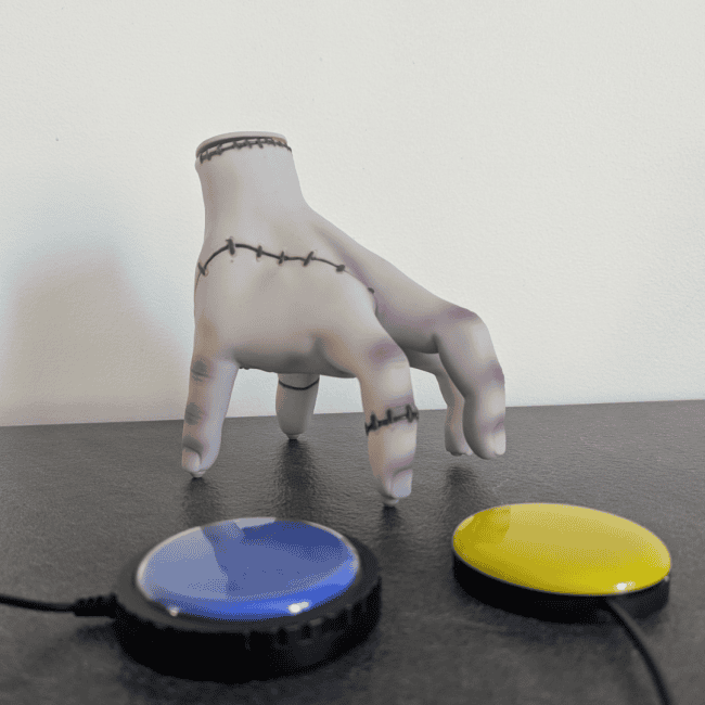 Offrez ร votre enfant une expรฉrience de jeu unique grรขce ร lโadaptation jouet contacteur de La Chose, le personnage culte de la sรฉrie Mercredi Addams, dont la saison 2 vient tout juste de sortir sur Netflix. Ce jouet tรฉlรฉcommandรฉ adaptรฉ permet de vivre ou revivre les aventures de Mercredi, tout en รฉtant accessible aux enfants en situation de handicap moteur grรขce ร sa compatibilitรฉ avec deux contacteurs externes (vendus sรฉparรฉment).
