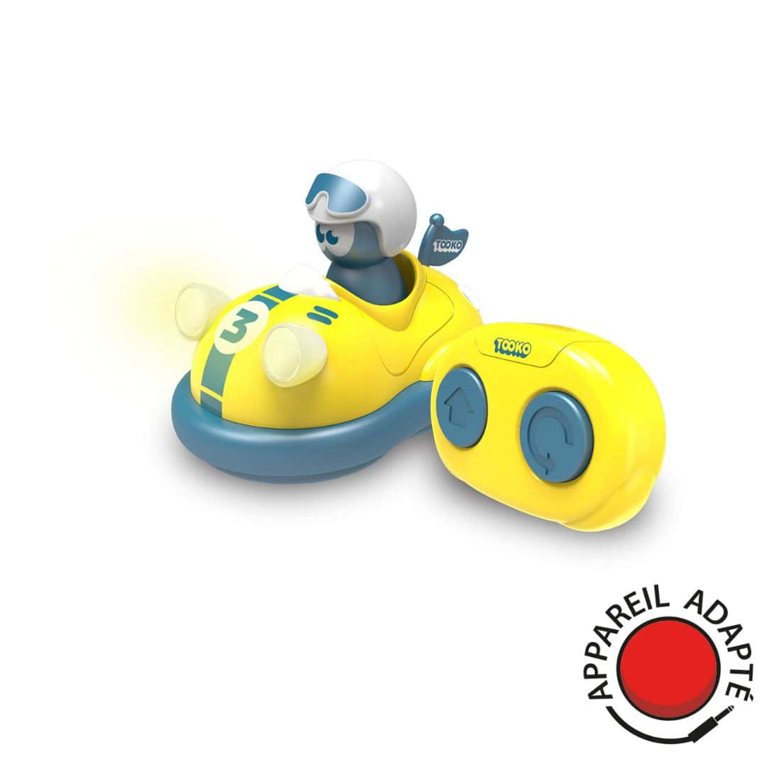 Oui, la télécommande d’origine est toujours fonctionnelle, permettant une utilisation classique par des enfants ou des adultes sans contacteur. Cela favorise le jeu inclusif où tous peuvent jouer ensemble avec le même jouet .