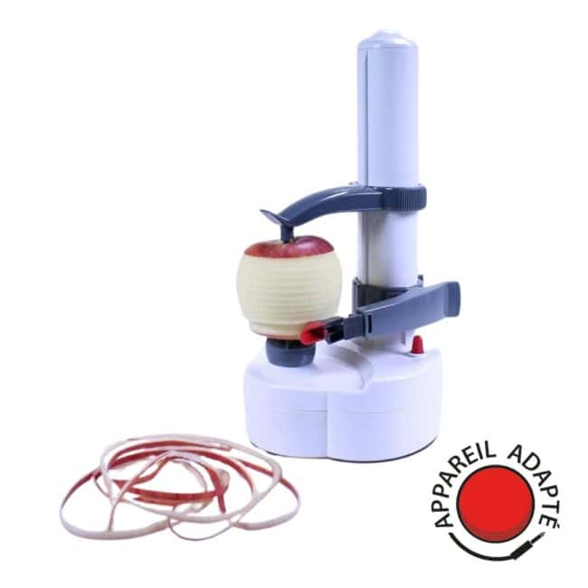 Parents : “Mon fils adore éplucher ses pommes tout seul pour le goûter. C’est un véritable bonheur de le voir si fier et autonome. Il me dit ‘Je fais tout seul maman !’ avec un sourire immense.” Nous utilisons cet éplucheur électrique adapté aussi comme jeu.