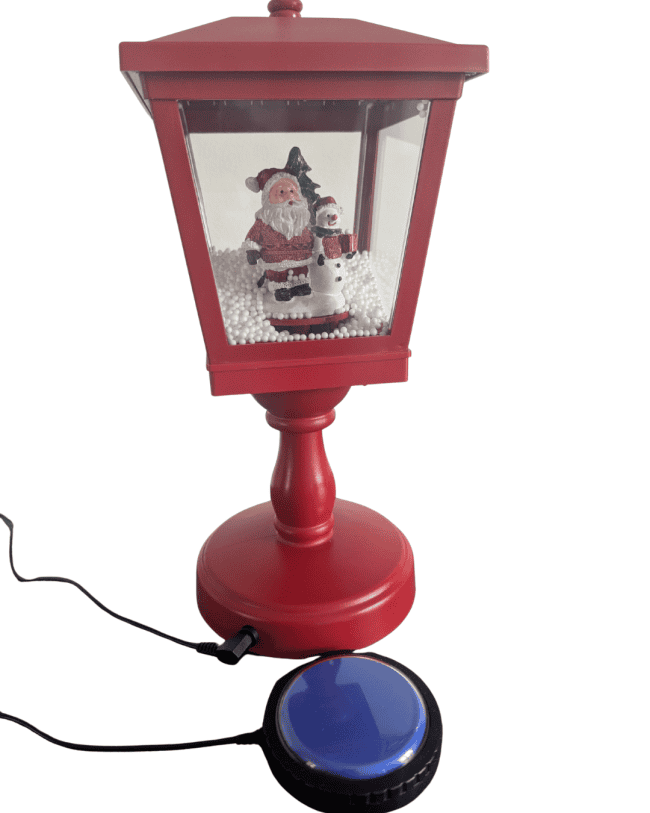Ce qui distingue cette lampe de Noël sensorielle des décorations classiques du commerce, c’est son adaptation professionnelle réalisée par Petit Pas de Fourmi. À l’origine, cette charmante lanterne n’est pas accessible aux personnes ayant des difficultés motrices. Notre équipe l’a transformée en outil inclusif en y ajoutant une connexion pour contacteur externe, permettant ainsi à chacun de déclencher la magie d’une simple pression.