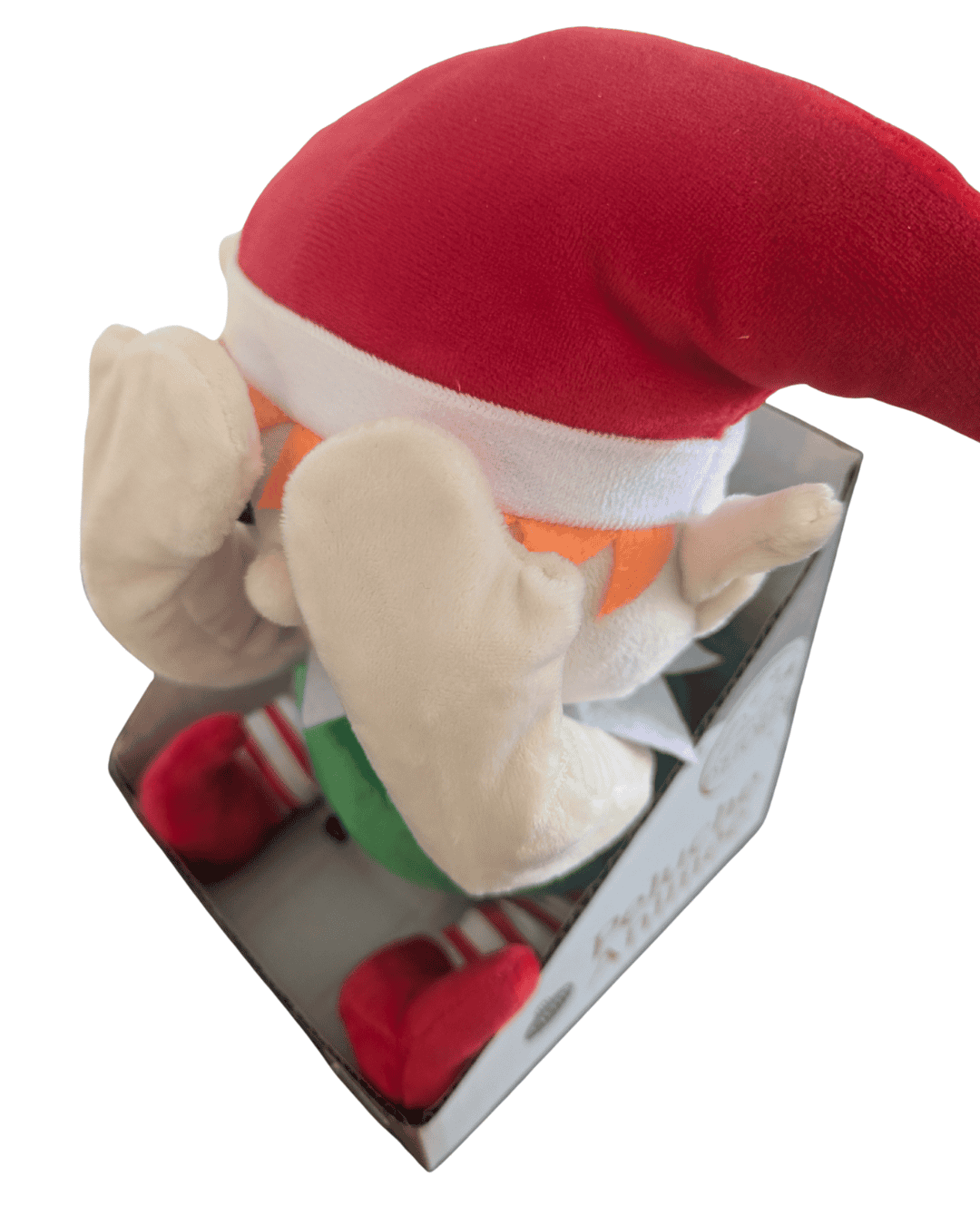 Le lutin farceur adapté pour contacteur joue une musique festive entraînante pendant qu’il joue à cache-cache et tire la langue. C’est une mélodie joyeuse de Noël qui ravit les enfants et crée une atmosphère festive.