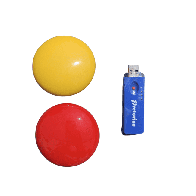 Le récepteur USB Receive2 peut accueillir jusqu’à six émetteurs SimplyWorks simultanément. Cette compatibilité multiple rend le SimplyWorks Switch Set particulièrement évolutif : il peut être utilisé seul, ou comme base pour un environnement complet de contrôle sans fil. On peut ainsi combiner plusieurs contacteurs, un joystick, un trackball ou un bouton de commande pour des usages variés : jeu, apprentissage, communication, pilotage d’environnement ou commandes collectives.